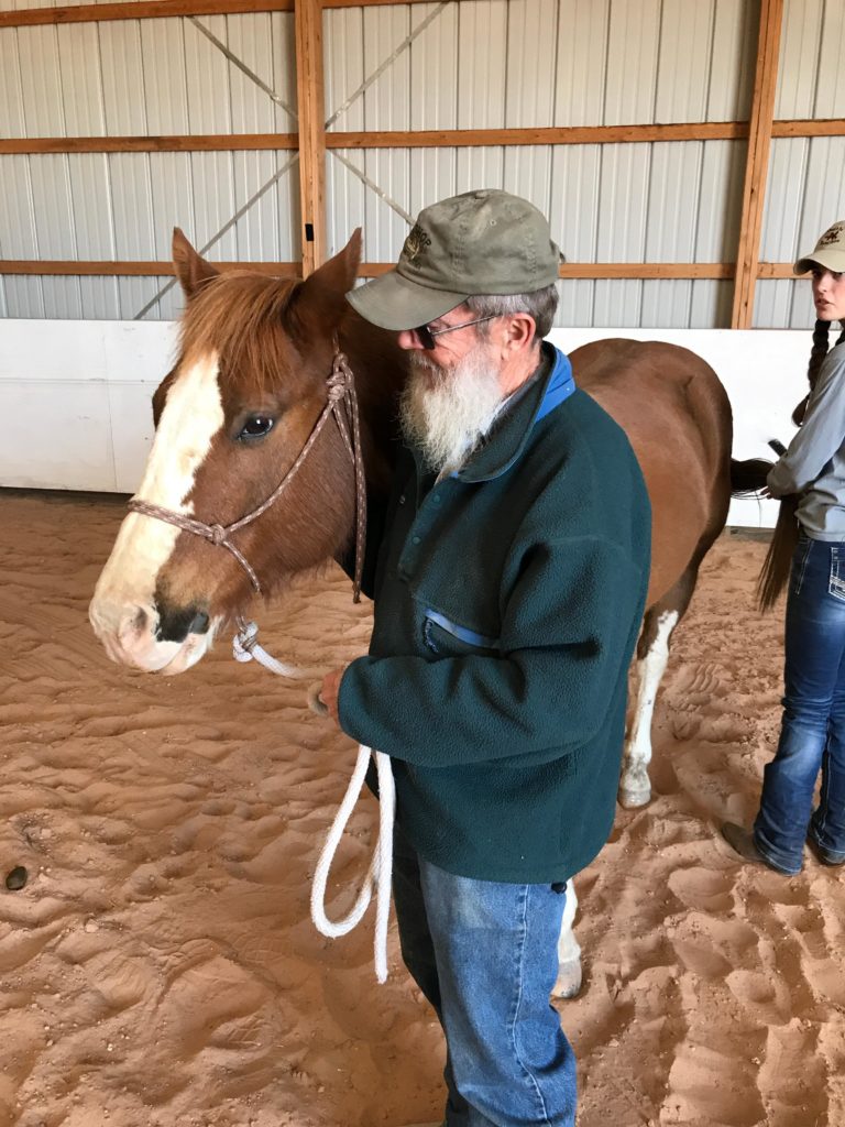 Curtis, in his late 70’s, a Vietnam Veteran, and an active horseman (or in his words, “a try to be horseman”).Because of the pandemic, we also had to cut back on our staff, on our horse in take, and overall, our annual budget to stay afloat as we didn’t know how it was going to effect the rescue as a whole. Rain, snow, wind, it didn’t matter, Curtis came out every Monday, Tuesday, Thursday, Friday, and Saturday to muck pens and stall, feed the senior horses and give meds to those that needed it, help winterize the equipment, groom the horses, whatever needed to be done that day, he did it!